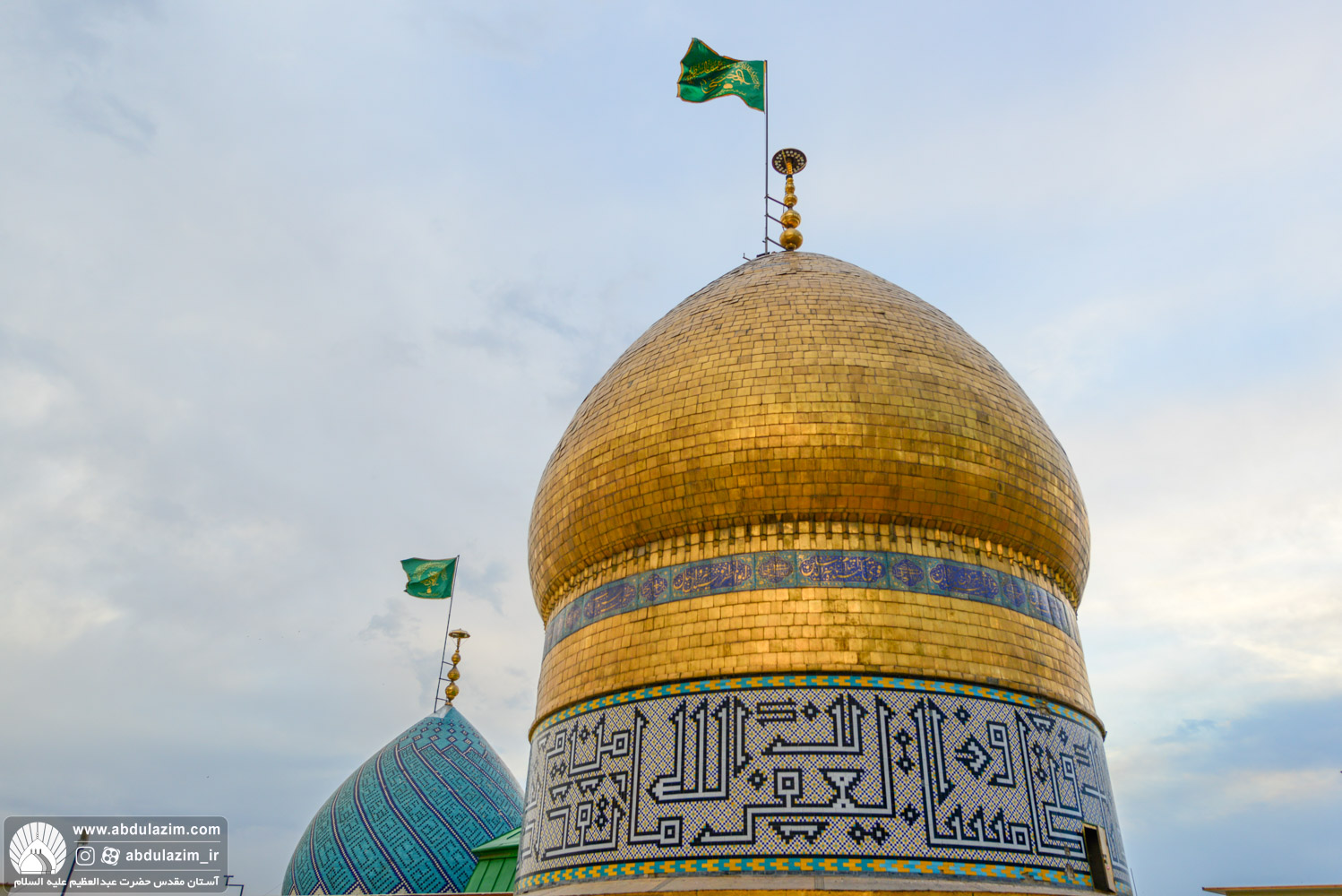اهتزاز پرچم گنبد حرم امام حسین(ع) بر فراز بارگاه حضرت عبدالعظیم(ع) / عکس:...