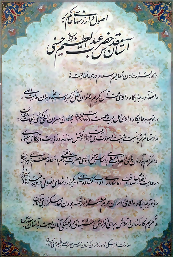 اصول و ارزشهای حاکم بر آستان مقدس حضرت عبدالعظیم علیه السّلام