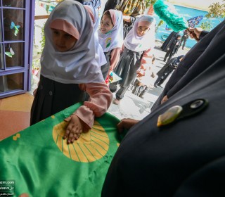حضور خادمین در مدرسه شاهد حجاب در روز بازگشایی مدارس